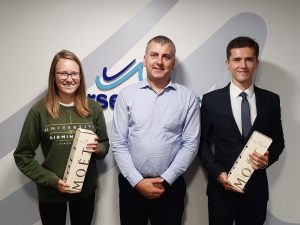 Jersey Water is celebrating the success of two of its Bursary Scheme students, who have graduated this summer with first class Masters degrees. Elizabeth Cornish and Lyndon Gledhill shared their good news with Helier Smith, Chief Executive of Jersey Water, who was thrilled by their achievements.